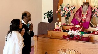 Superstar Rajinikanth, who is all set for Kabali release this Friday (July 22), along with his daughter Aishwarya visited Satchidananda Ashram, also known as Yogaville, in Virginia.