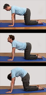 - Follow this by a countermovement: As you exhale, drop your chin to your chest and arch your back up as much as you can; relax the buttocks.