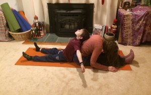 To practice this one, lie on your belly on the floor and have your partner rest perpendicular to you over your lower back. Very slowly, have him or her log-roll up and down over your lower back. Close your eyes and envision your muscles untying under the consistent pressure of your partner—so reposeful.