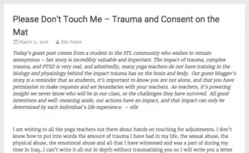"Initially, teachers weren't that responsive, " she said. "I brought it to a yoga studio in Washington, D.C., and they said, 'No. We assist everyone. If they don't like it, we don't want them coming here.' . . . Now, that's totally changed. We rarely get someone saying that anymore. People are saying, yes, injuries do happen. People have medical issues. We can't just go in a class with 30 or 40 people and teach them all the same."