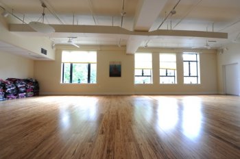 This smaller space is 640 sq. feet with 11 feet ceilings. Filled with natural light it has large windows on two sides of the building this an ideal space for a smaller group.