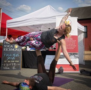 Nope! In fact, Acroyoga is actually a great way to meet new people. Nothing gets you comfortable with someone you just met quite like trusting them to lift you in the air. Even if you do bring a partner, you’ll probably end up working in a larger group at some point.